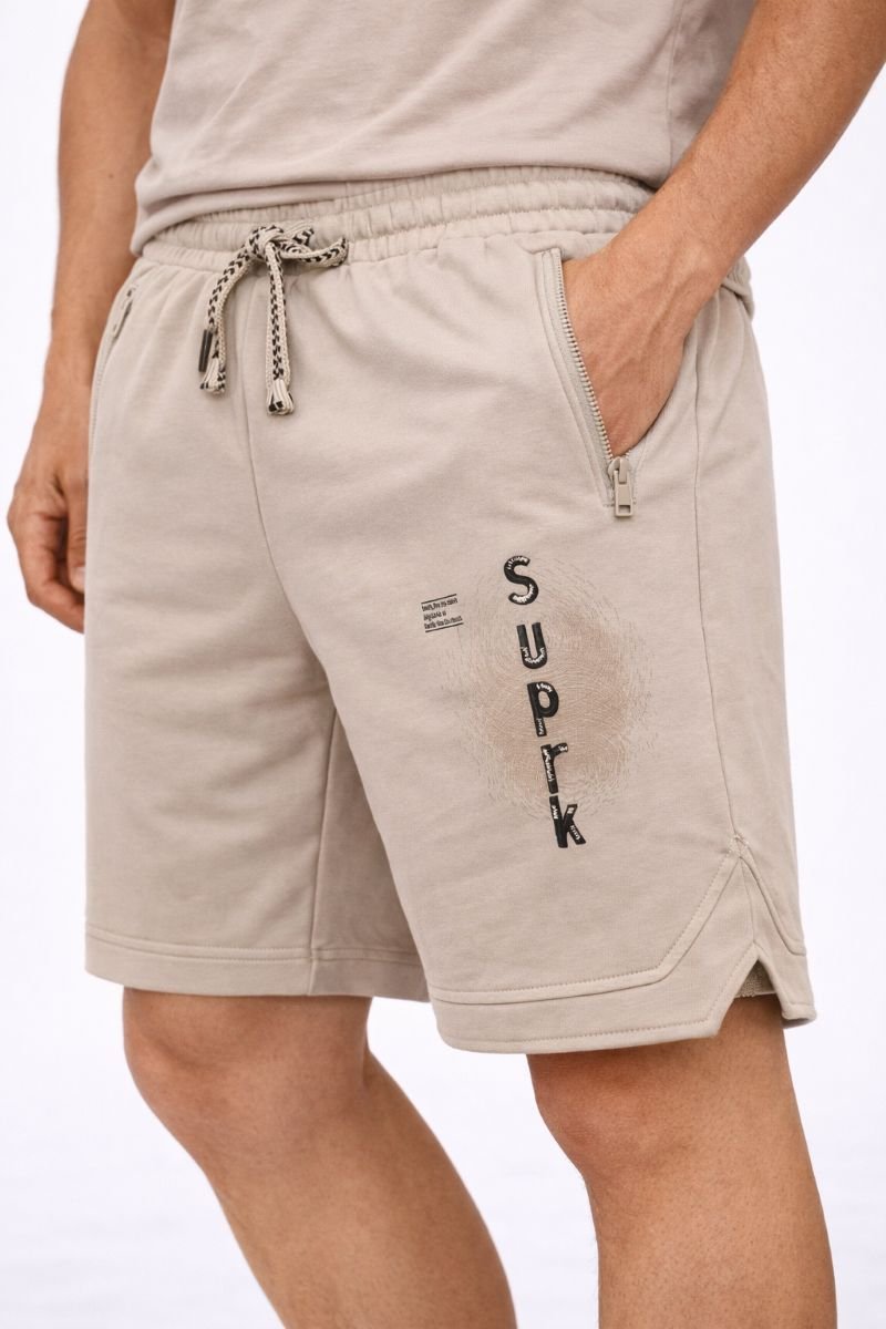 Διαθέτει ελαστική μέση με κορδόνι για τέλεια εφαρμογή, ενώ οι τσέπες με φερμουάρ προσφέρουν πρακτικότητα και ασφάλεια. Το ιδιαίτερο print στο πλάι και τα κοψίματα στο τελείωμα αναβαθμίζουν το design, δίνοντας ένα σύγχρονο street χαρακτήρα.
