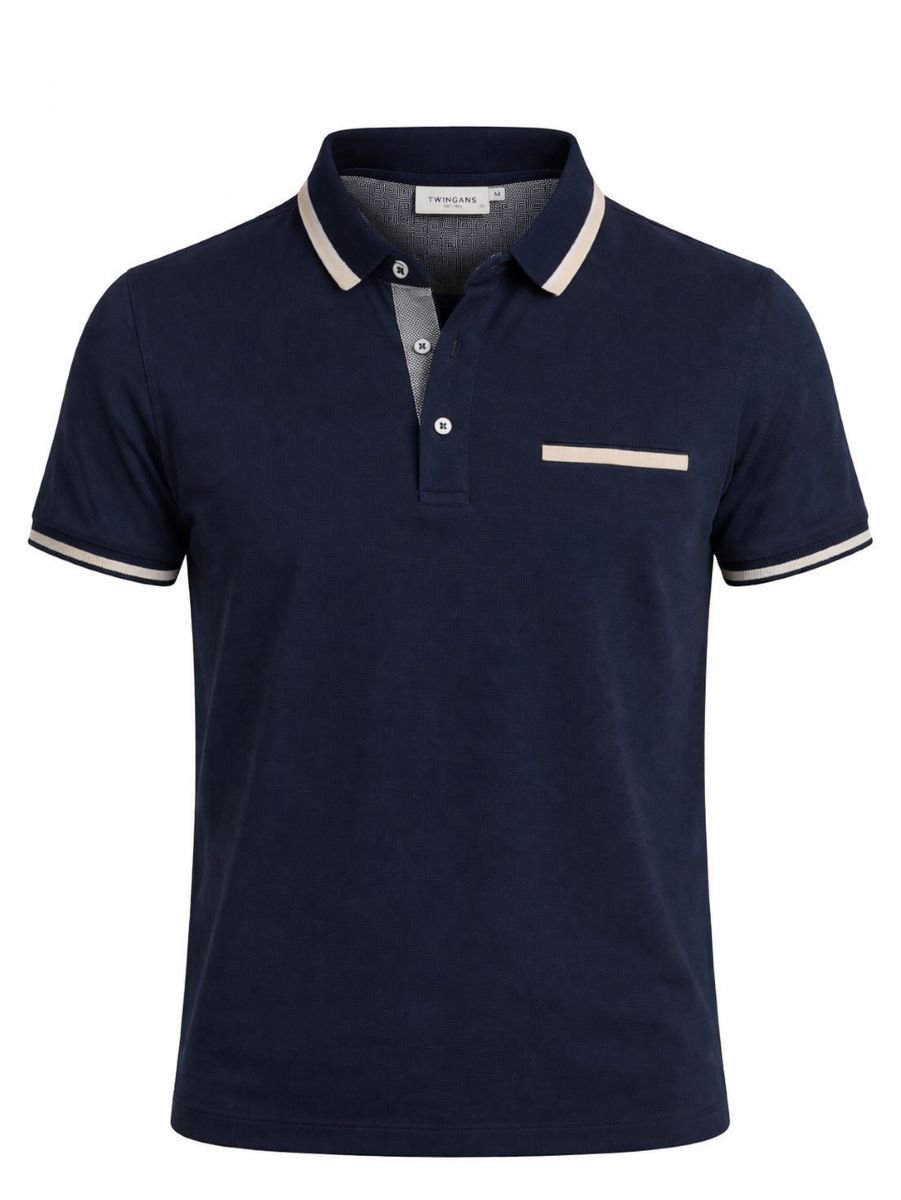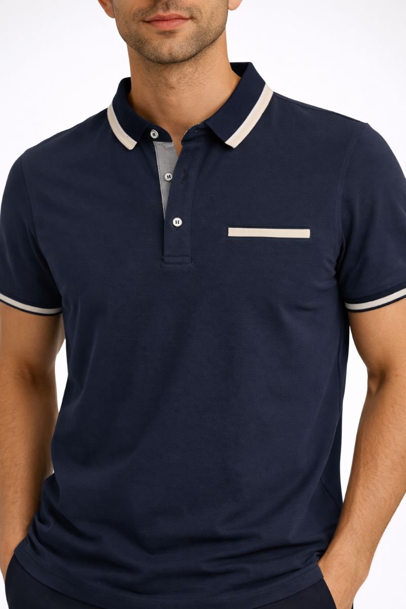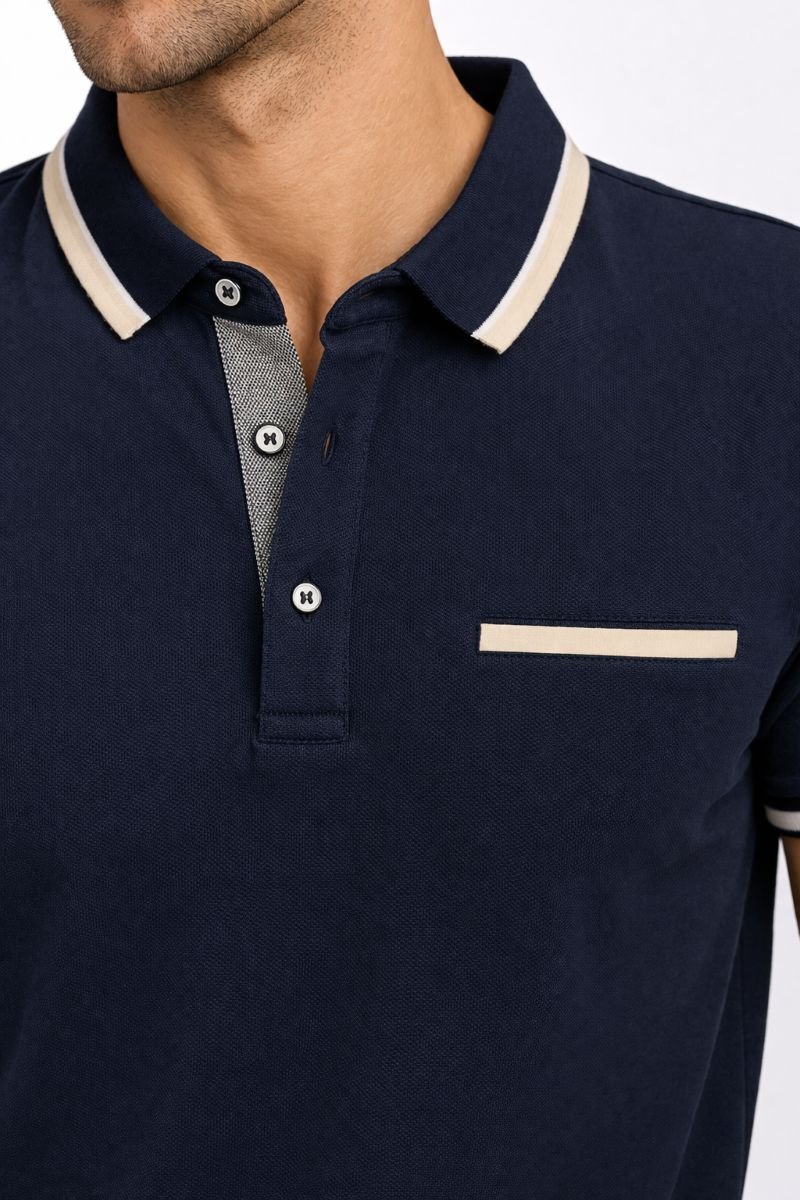 Ανδρικό Polo Μπλουζάκι Λευκό Regular Fit με Contrast Γιακά