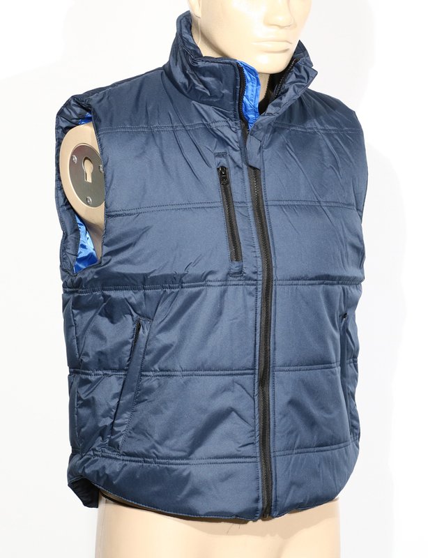 Μοντέρνο γιλέκο αδιάβροχο ,φουσκωτό και τρείς τσέπες με φερμουάρ. Έξτρα ύφασμα για καλύτερη κάλυψη λαιμού και επένδυση σε άλλο χρώμα.