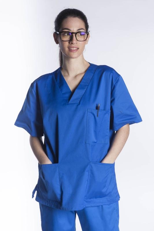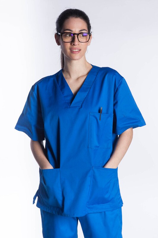 Μπλούζα ιατρική κοντομάνικη με ‘V’ λαιμό και τρείς εξωτερικές τσέπες .