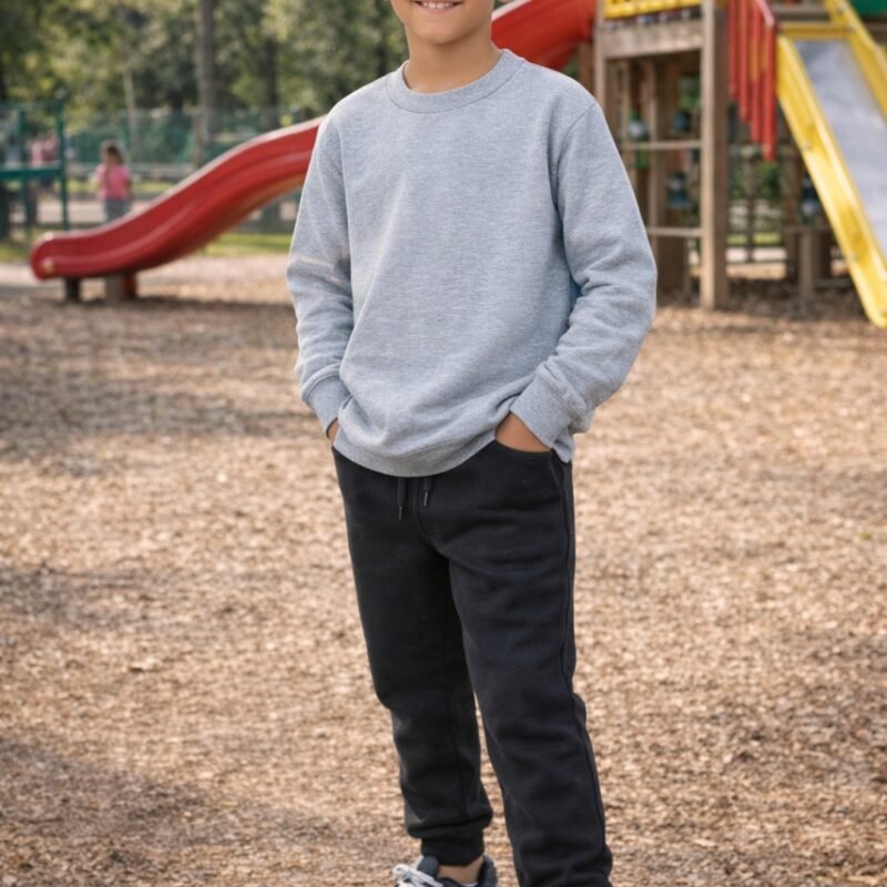 Παιδική φούτερ μπλούζα , Παιδική μπλούζα φούτερ τύπου ‘κολεγίου’ με στρογγυλή λαιμόκοψη και λάστιχο στις μανσέτες και στην μέση.