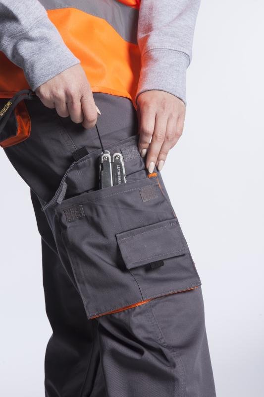 Παντελόνι εργασίας με ευρύχωρες τσέπες στο πλάι και πίσω με velcro κούμπωμα,δύο ανακλαστικές ταινίες 5cm  , ενίσχυση στα γόνατα για μεγαλύτερη αντοχή και λάστιχο στην μέση για άριστη εφαρμογή.