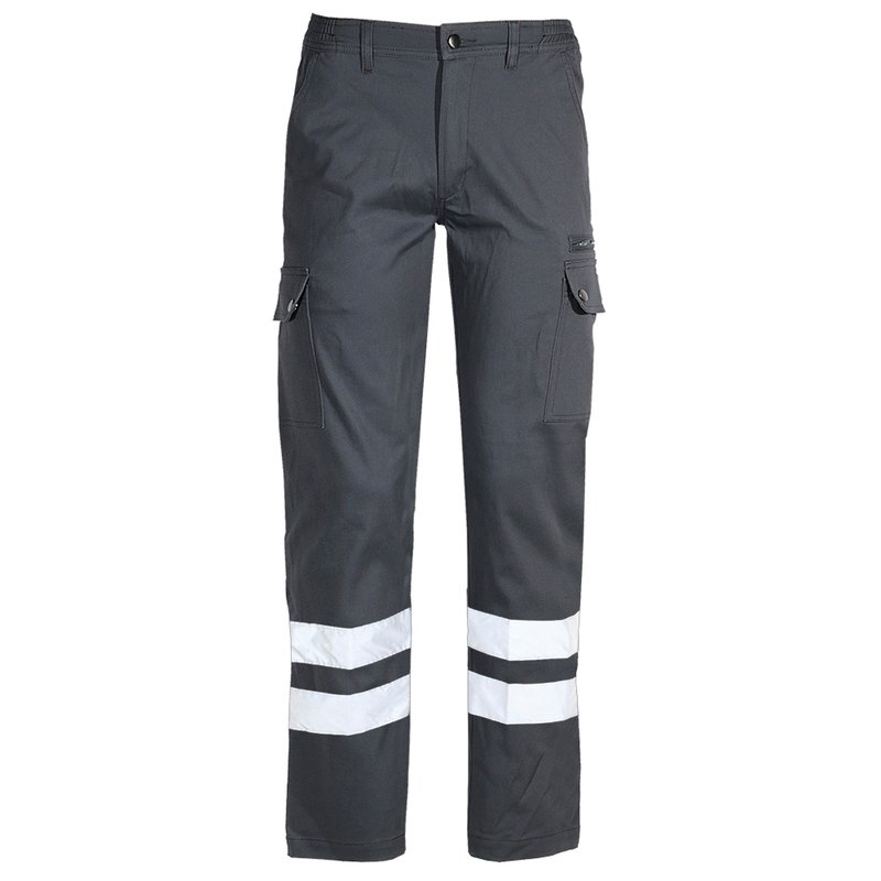Παντελόνι εργασίας στενής γραμμής με ανακλαστικές ταινίες , Παντελόνι εργασίας σε στενή γραμμή με 2 ανακλαστικές ταινίες , με μοναδική εφαρμογή και άνεση . Με πλαϊνες ευρύχωρες τσέπες και τσέπη με φερμουάρ και τσέπες πίσω .
