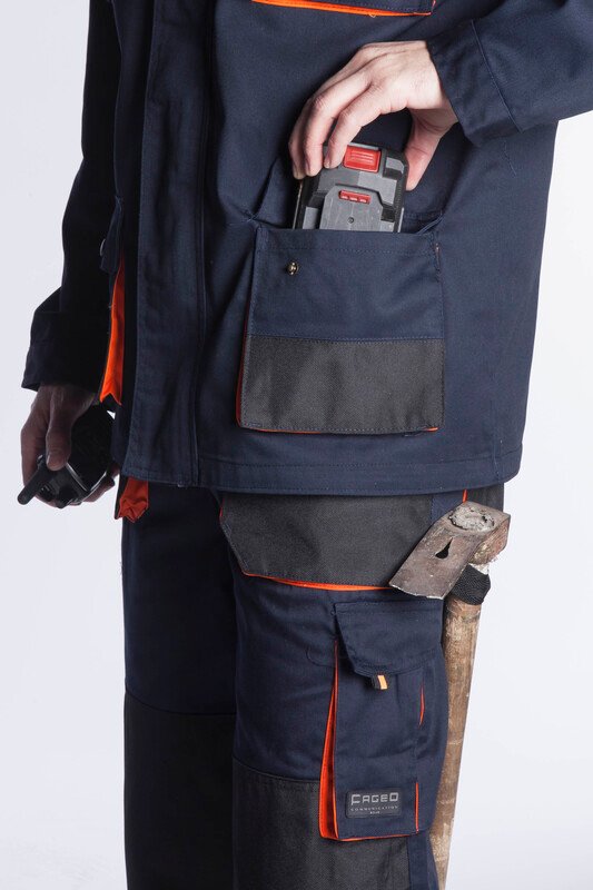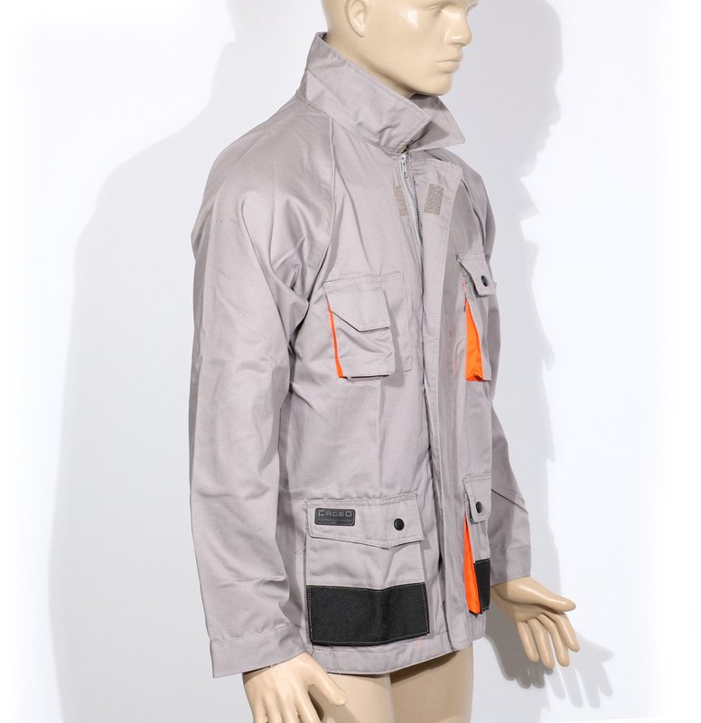 Σακάκι εργασίας , Σακάκι εργασίας άνετο και λειτουργικό με τέσσερις λειτουργικές τσέπες στις οποίες υπάρχει oxford ενίσχυση , raglan μανίκια και κεντρικό κούμπωμα με φερμουάρ και velcro .