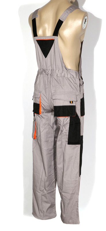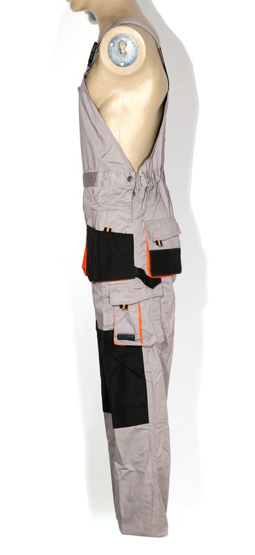 Φόρμα εργασίας με ρυθμιζόμενες τιράντες και πολλές λειτουργικές τσέπες , μία μεγάλη τσέπη μπροστά με φερμουάρ ιδανική για κέντημα και τσέπες/θήκες για εργαλέια στο πλάι . Υπάρχει oxford ενίσχυση σε τσέπες και στα γόνατα για μεγαλύτερη αντοχή .