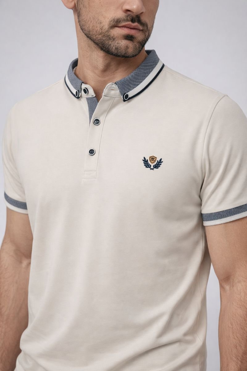 Ανδρική Μπλούζα Polo Beige Regular Fit με Κέντημα