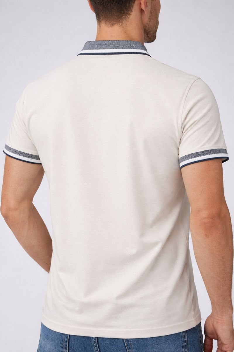Αναβάθμισε το καθημερινό σου στυλ με αυτή την ανδρική polo μπλούζα σε διαχρονικό μπεζ χρώμα. Κατασκευασμένη από 95% βαμβάκι και 5% spandex, προσφέρει εξαιρετική άνεση, διαπνοή και ελευθερία κινήσεων.